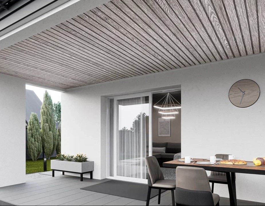 Помимо функций защиты и вентиляции, софиты помогают завершить внешний вид здания, скрывая места перехода от вертикальных поверхностей к горизонтальным. Полуматовая поверхность и текстура софитов реалистично имитируют натуральное дерево.